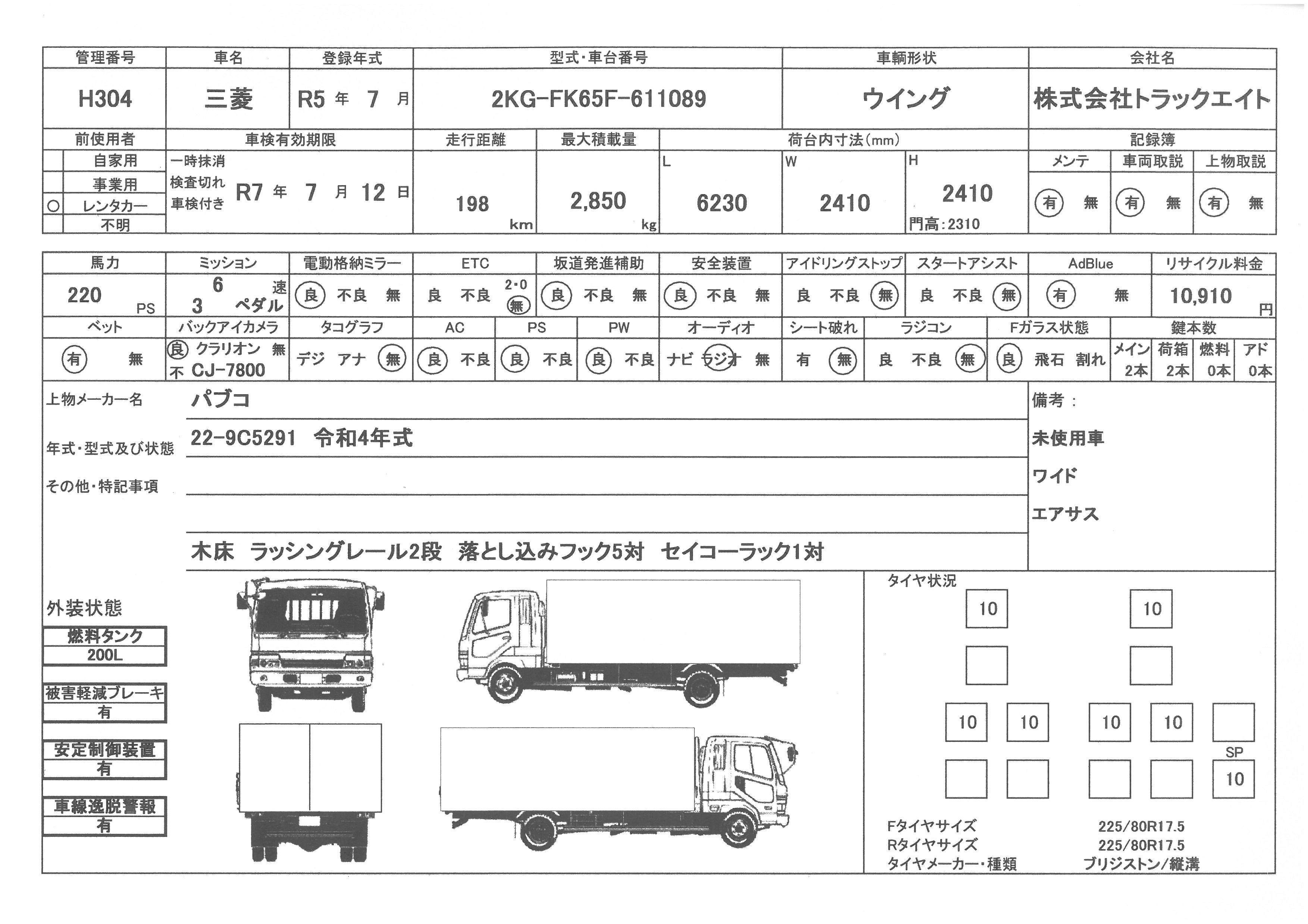 セールスポイント 未使用車 ワイド L6230 エアサス 220PS