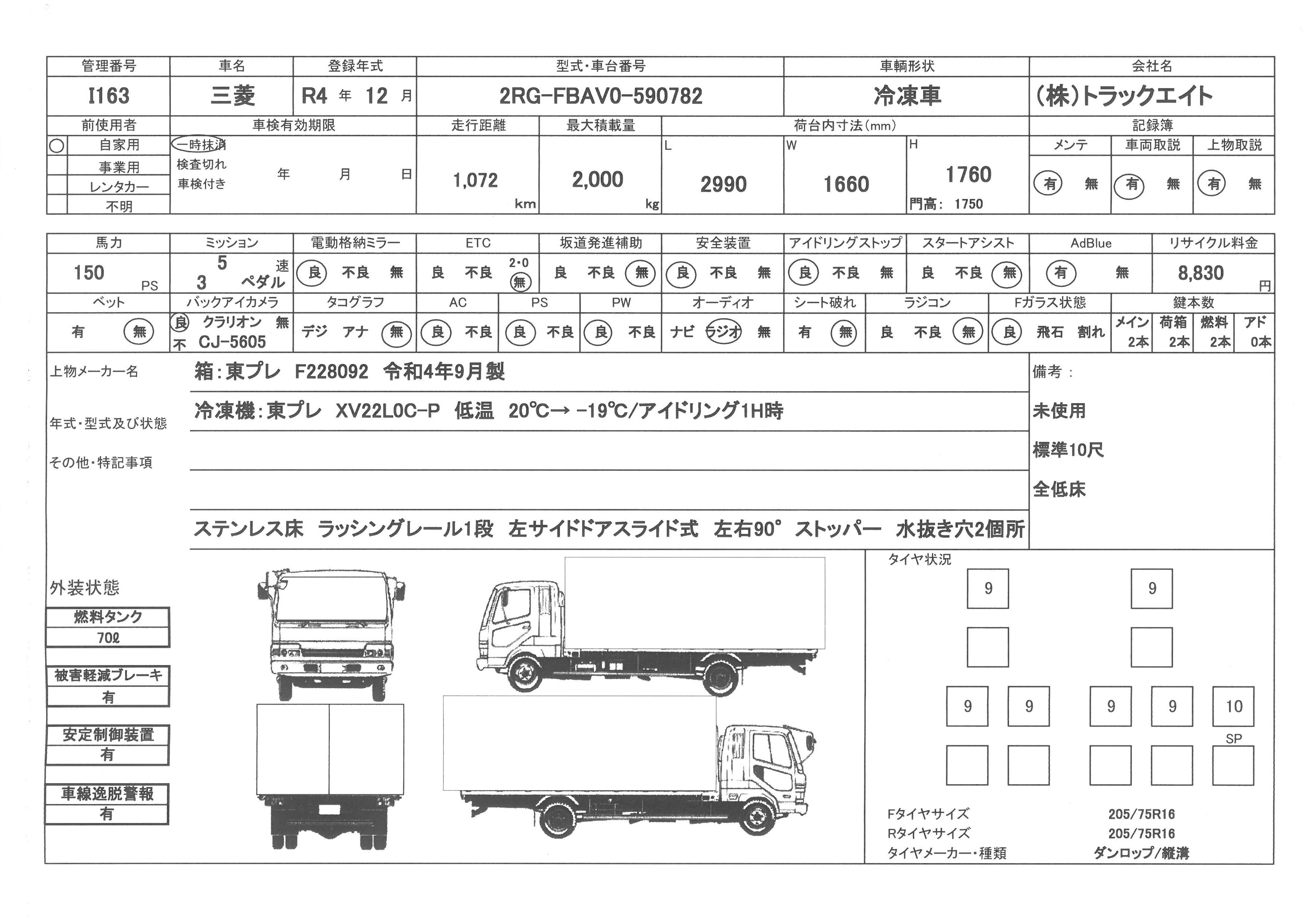 | 上物 | 東プレ | 上物形式 | XV22LOC | 荷台寸法 | 2.99×1.66×1.76 |