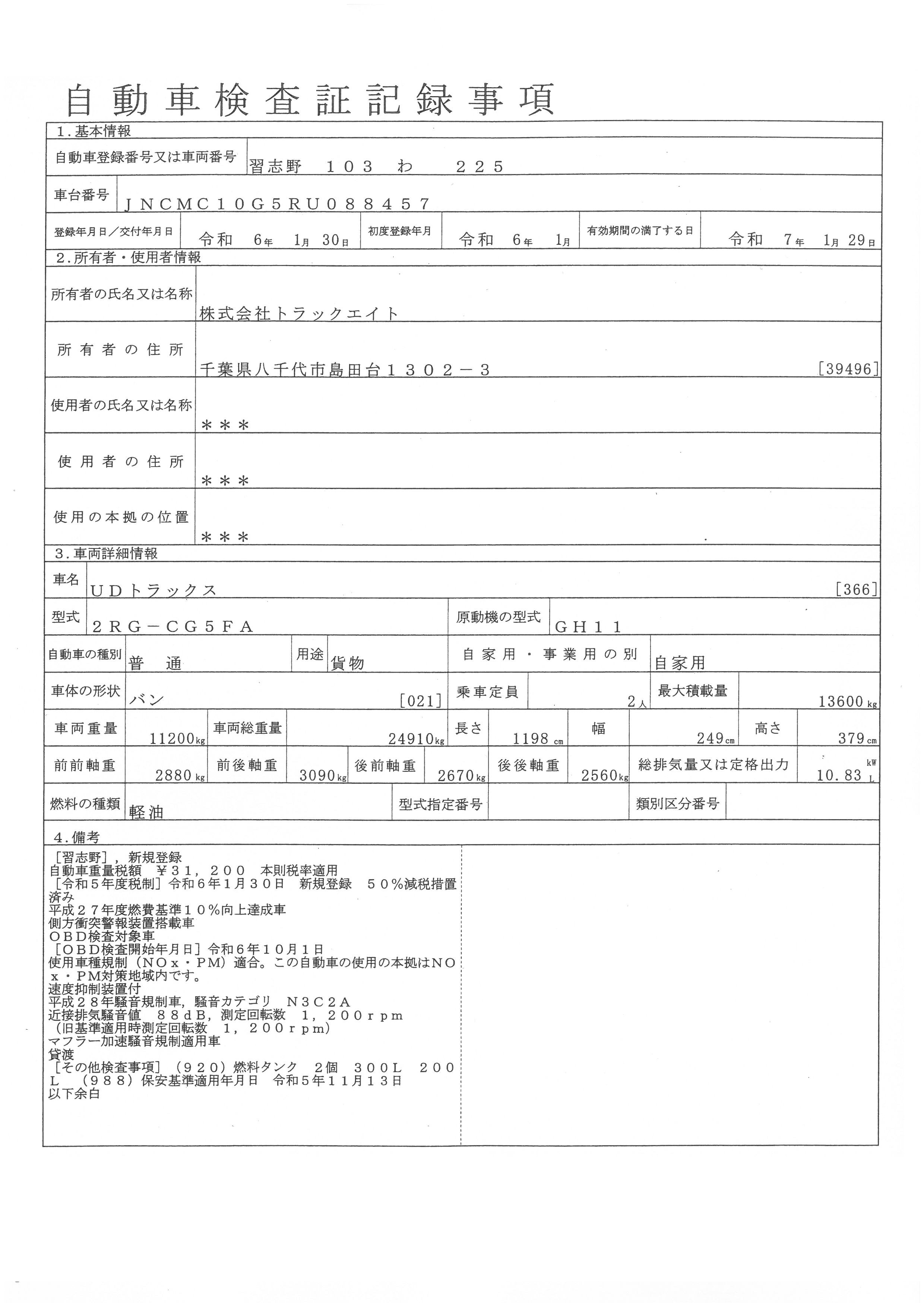 初年度登録 令和6年1月 型式 2RG-CG5FA 車検期限 令和7年1月29日