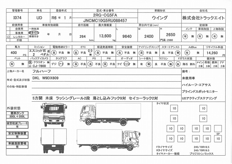 走行距離 1千km リサイクル料 14260円 積載量 13600㎏