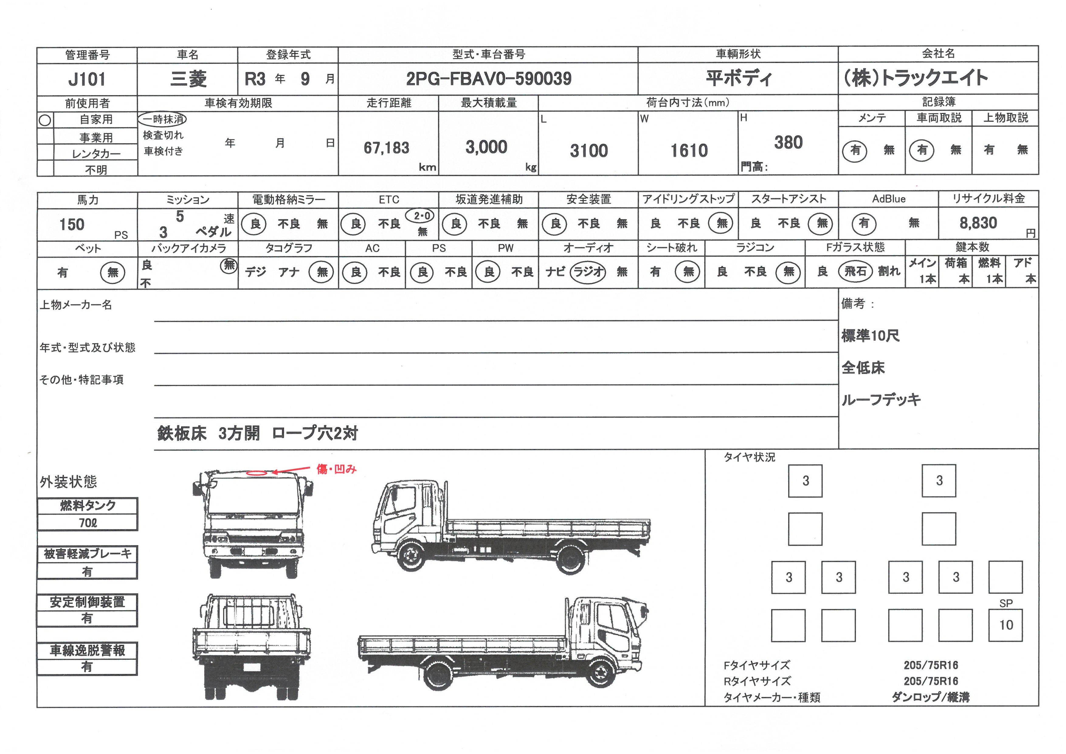 問合せ番号 J101 [船橋在庫] メーカー 三菱 形状 平ボディー