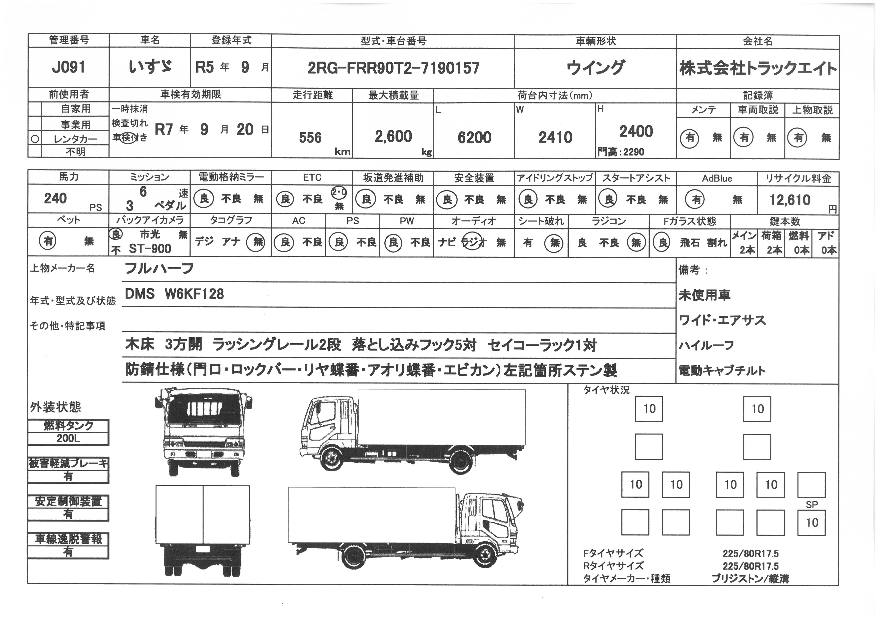 上物 フルハーフ 上物形式 DMS 荷台寸法 6.20×2.41×2.40
