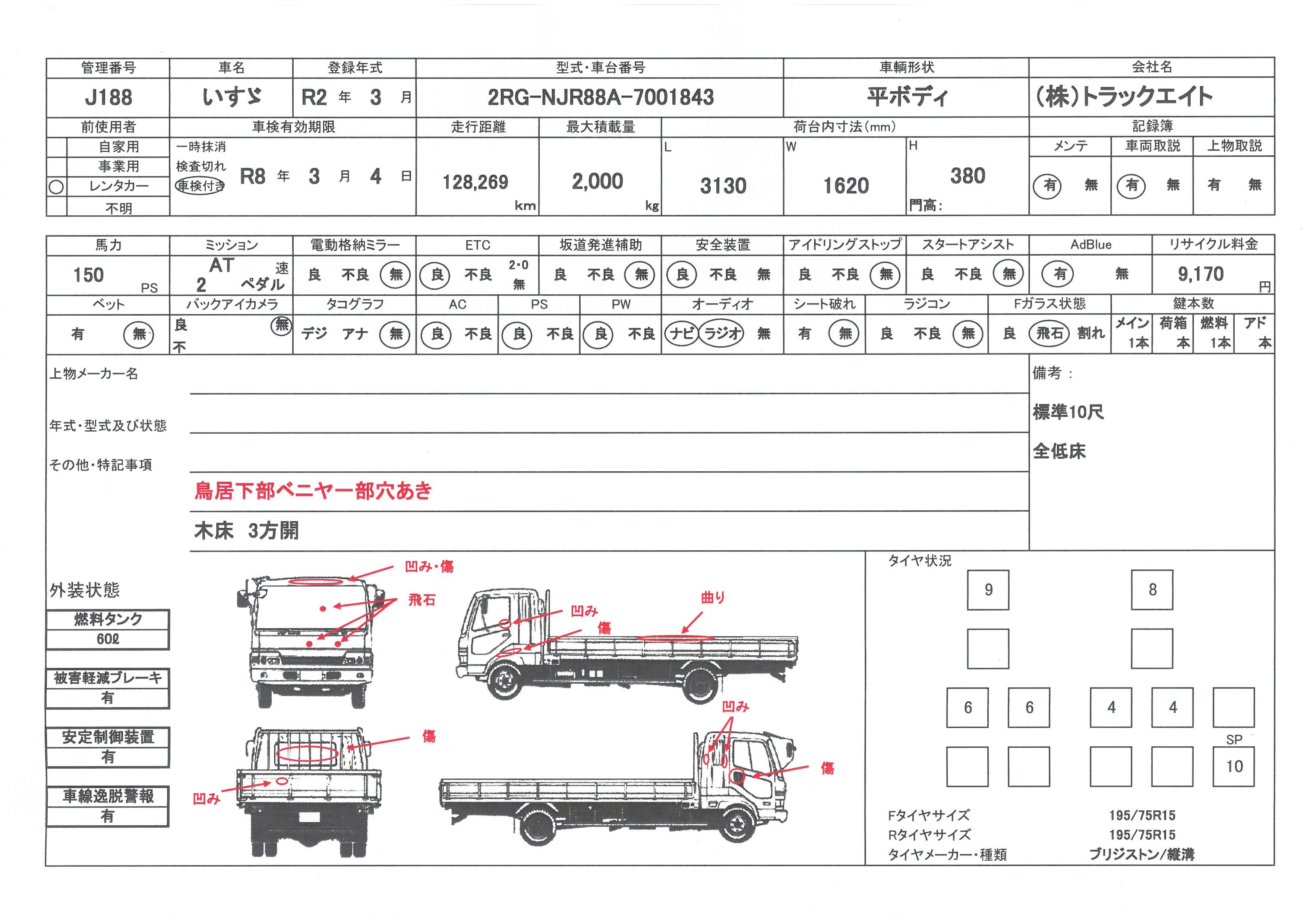 問合せ番号 J188 [船橋在庫] メーカー いすゞ 形状 平ボディー