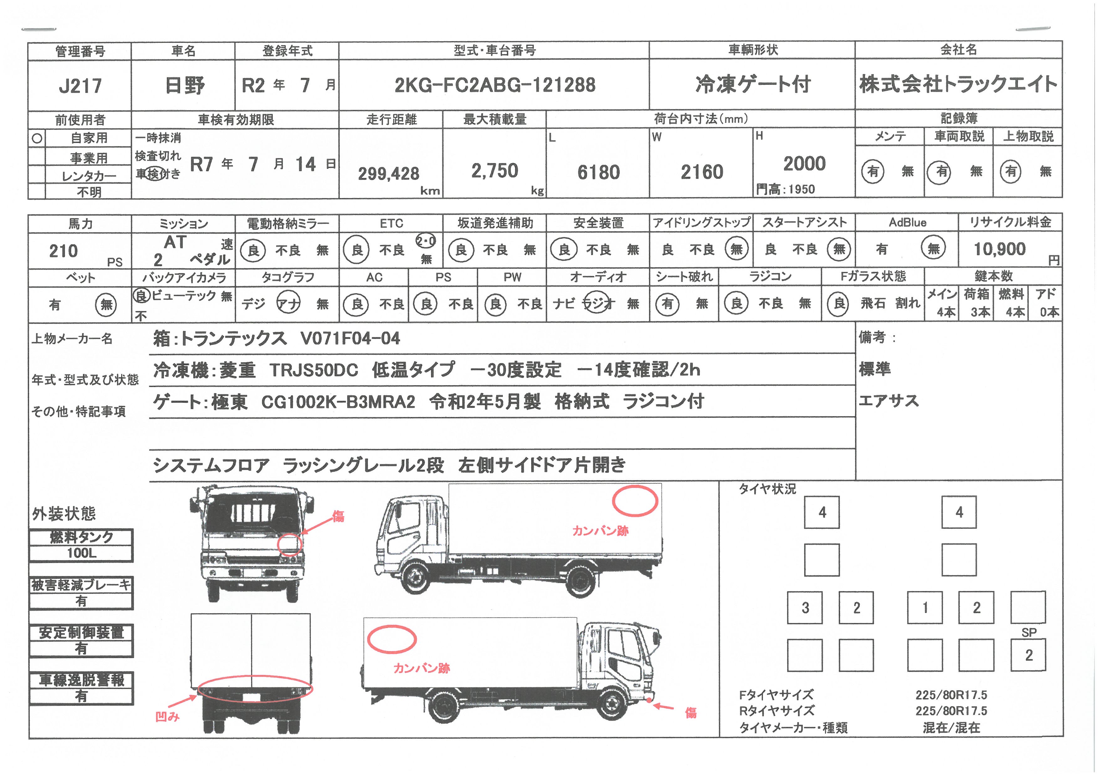 | 問合せ番号 | J217 [八千代在庫] | メーカー | 日野 | 形状 | 冷凍ゲート付 |