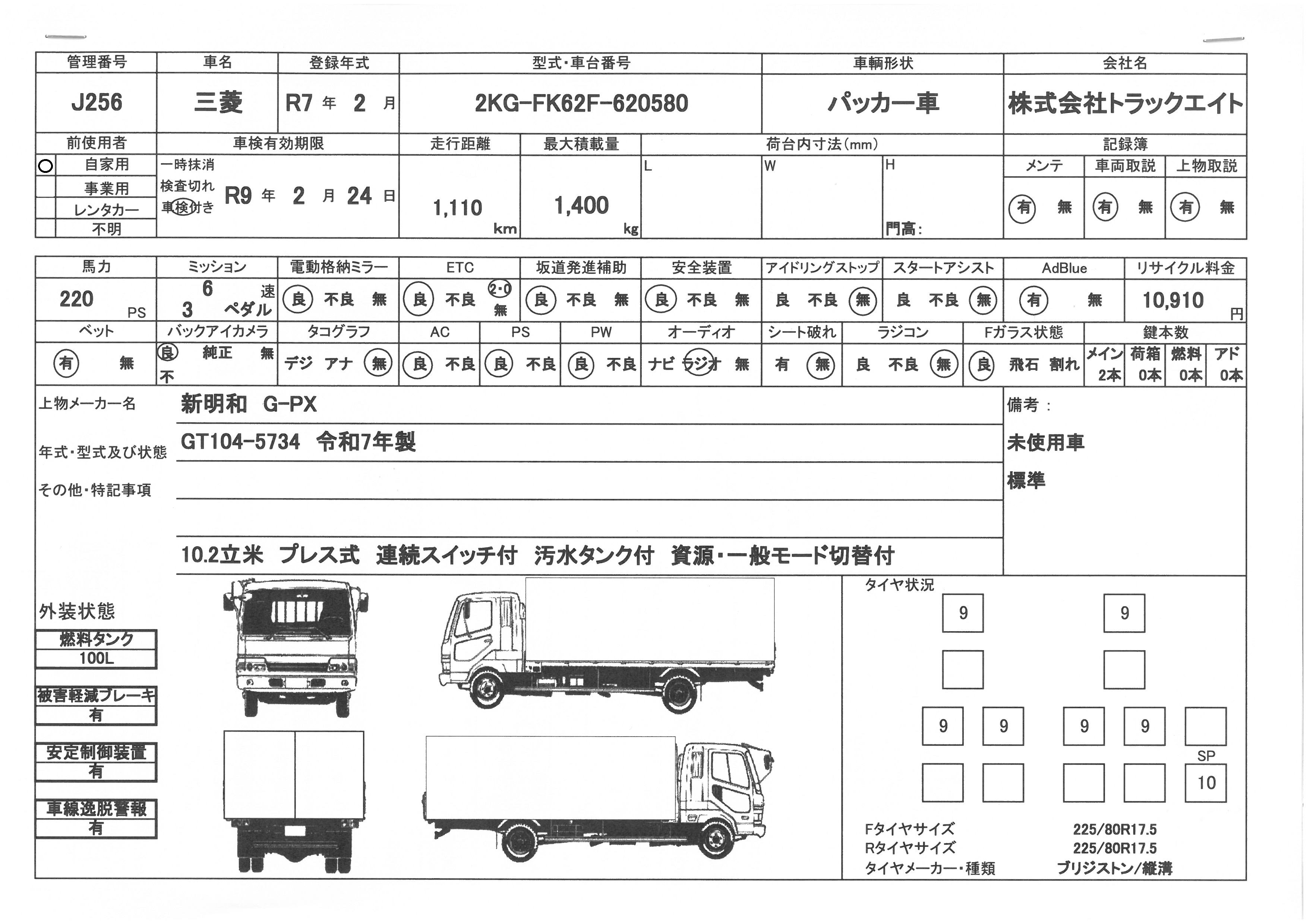 三菱 令和7年式 パッカー 新明和 10.2立米 プレス式
