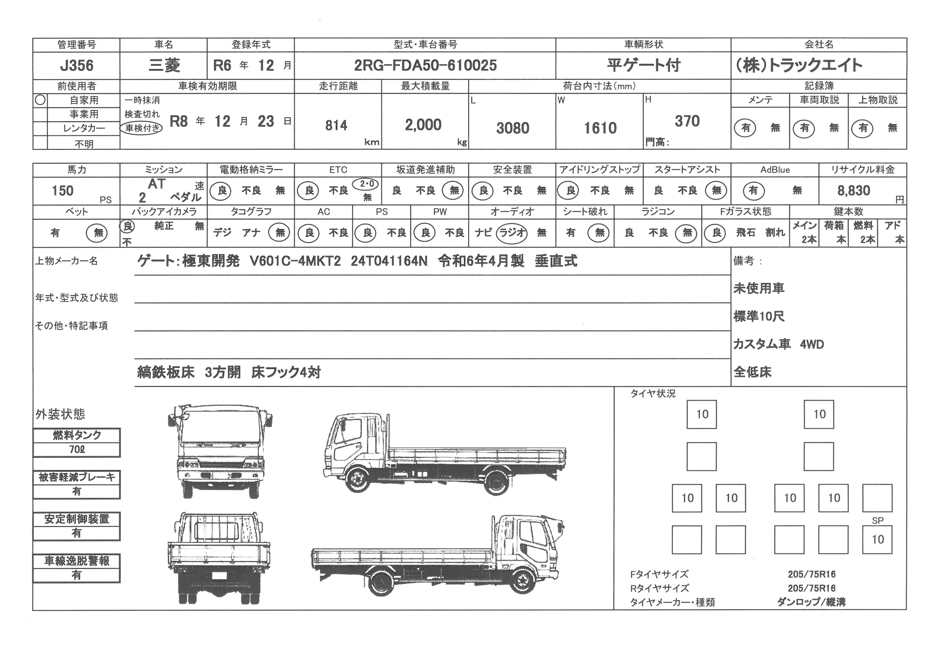 三菱 令和6年式 平ボディー 標準10尺 4WD 垂直G 2t積載