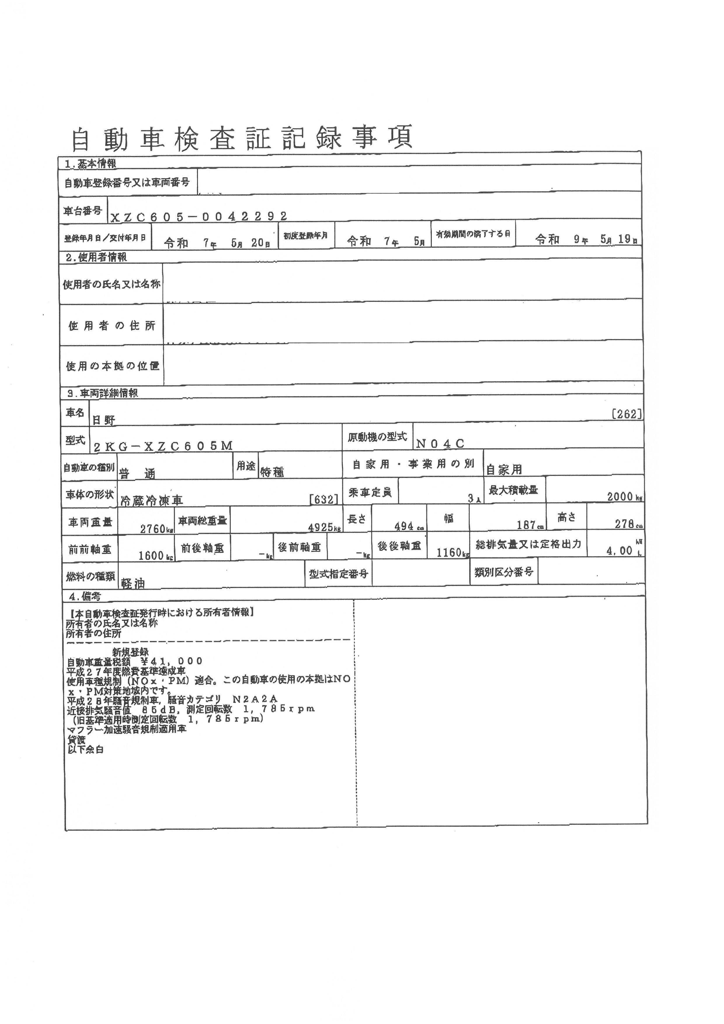 初年度登録 令和7年5月 型式 2KG-XZC605M 車検期限 令和9年5月19日