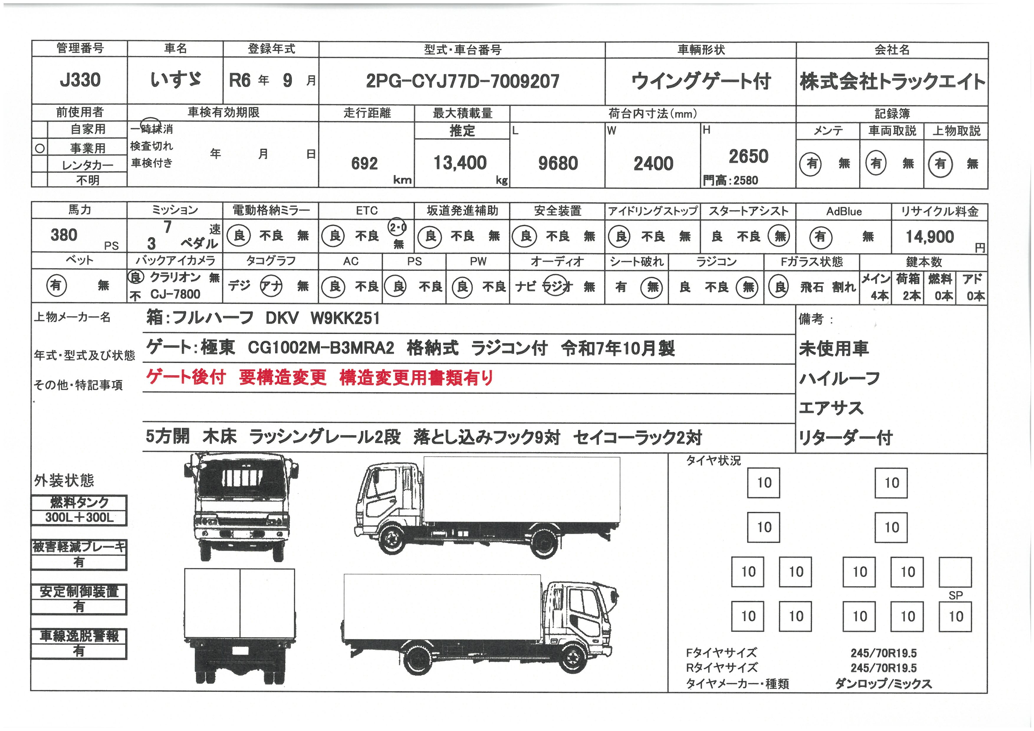 問合せ番号 J330 [八千代在庫] メーカー いすゞ 形状 ウイングゲート付